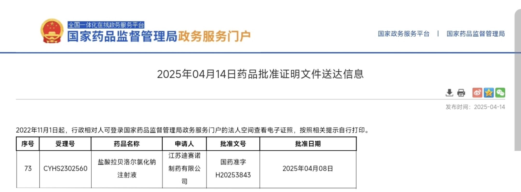 热烈祝贺米兰·网站盐酸拉贝洛尔氯化钠注射液全国首仿获批